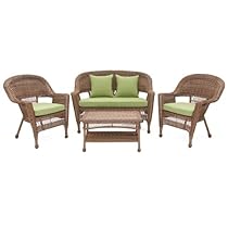 4pc Honey Wicker Conversation Set - Green Cushions Description :